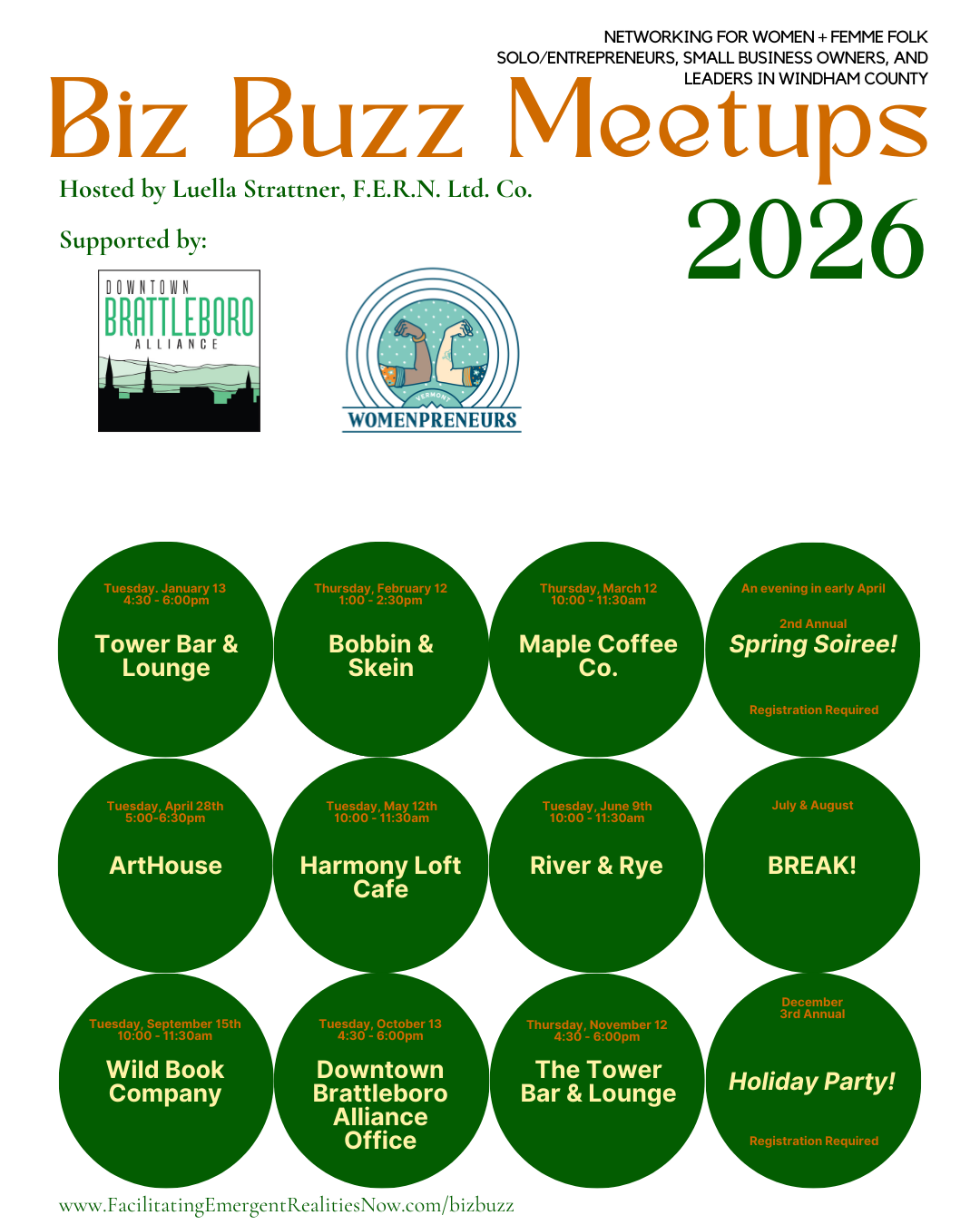 The Biz Buzz events are posted on the Downtown Brattleboro Alliance Calendar as well as published in the Common’s Calendar and I share about them on Instagram: o0.f.e.r.n.0o