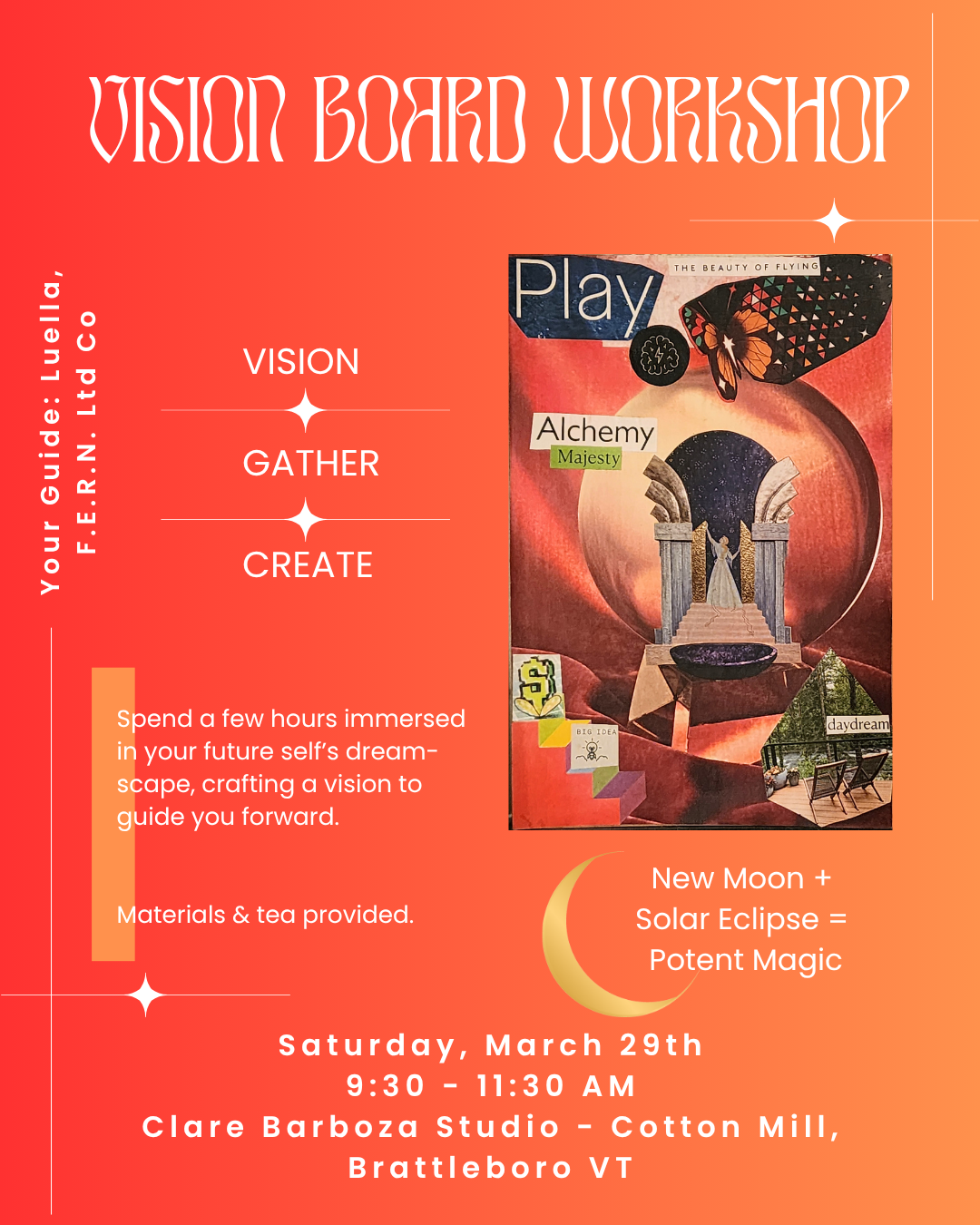 I offer this in person, once a year at an energetically potent time, and am occasionally available to host vision board workshops for private, small groups.