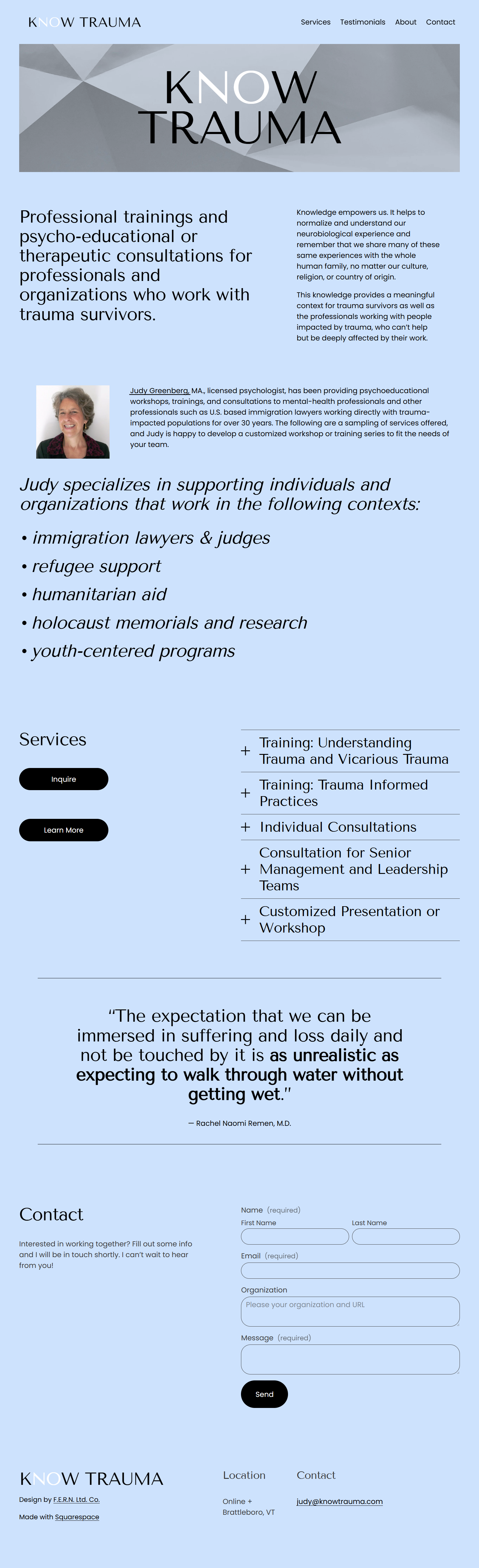 I support primarily new businesses and organizations in establishing an online presence via simple, customized, templated websites. As a Silver Square Space Circle Member, I can offer discounts on plans.